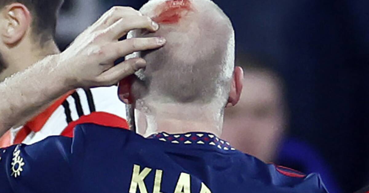 Klaassen reçoit un coup à la tête, le sang coule et le match de coupe est temporairement interrompu avant de reprendre et de se terminer. L’Ajax s’est imposé 2-1 et s’est qualifié pour la finale de la Coupe des Pays-Bas.