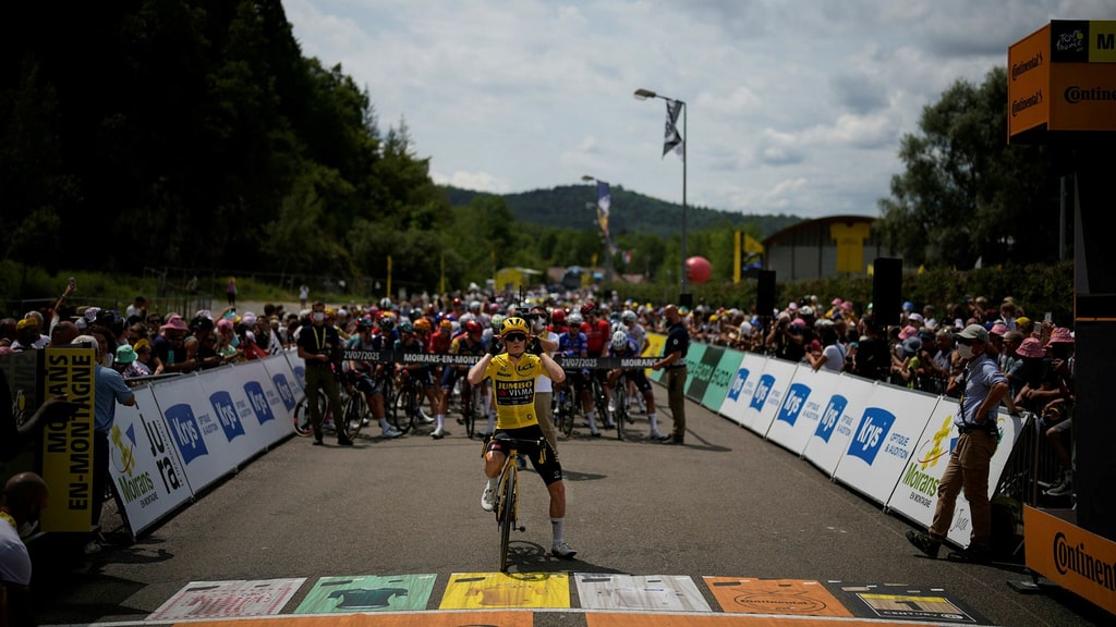 La conséquence est qu’un cycliste se heurte au bras et s’écrase au sol. Vingt autres suivent, dont l’Américain Sepp Kuss et le Belge Nathan van Hooydonck – qui, comme le leader du classement général Jonas Vingegaard, appartient à Jumbo-Visma.