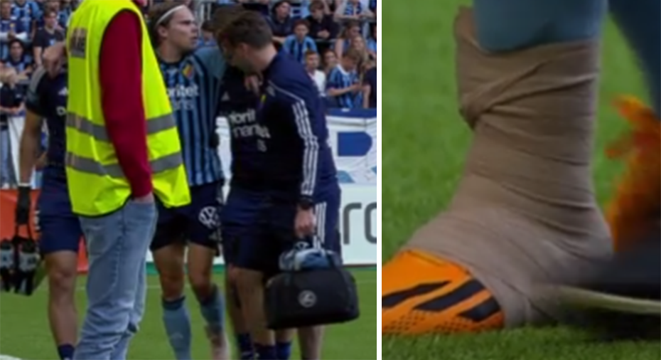 L’arrière gauche s’est blessé lors d’un duel avec Häckens Momodou Sonko. Il est resté allongé sur le tapis en plastique de la Tele2 Arena et a reçu des soins.