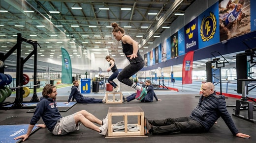 Les dames alpines suédoises se sont réunies à Bosön sur Lidingö pour leurs tests de condition physique annuels. Les tests de force, qui comprennent des exercices de fitness difficiles et des mesures de la flexibilité, de la force, de la vitesse et de l’agilité, sont effectués quelques semaines plus tôt que d’habitude. Il est donc difficile d’en tirer des conclusions, disent les athlètes. Mais ce qui est clair, c’est que Swenn-Larsson, l’athlète vedette de cet hiver Hanna Aronsson Elfman, les skieuses de la Coupe du monde Estelle Alphand et Himla Lövblom et le reste de l’équipe s’encouragent mutuellement et prennent les tests très au sérieux.
