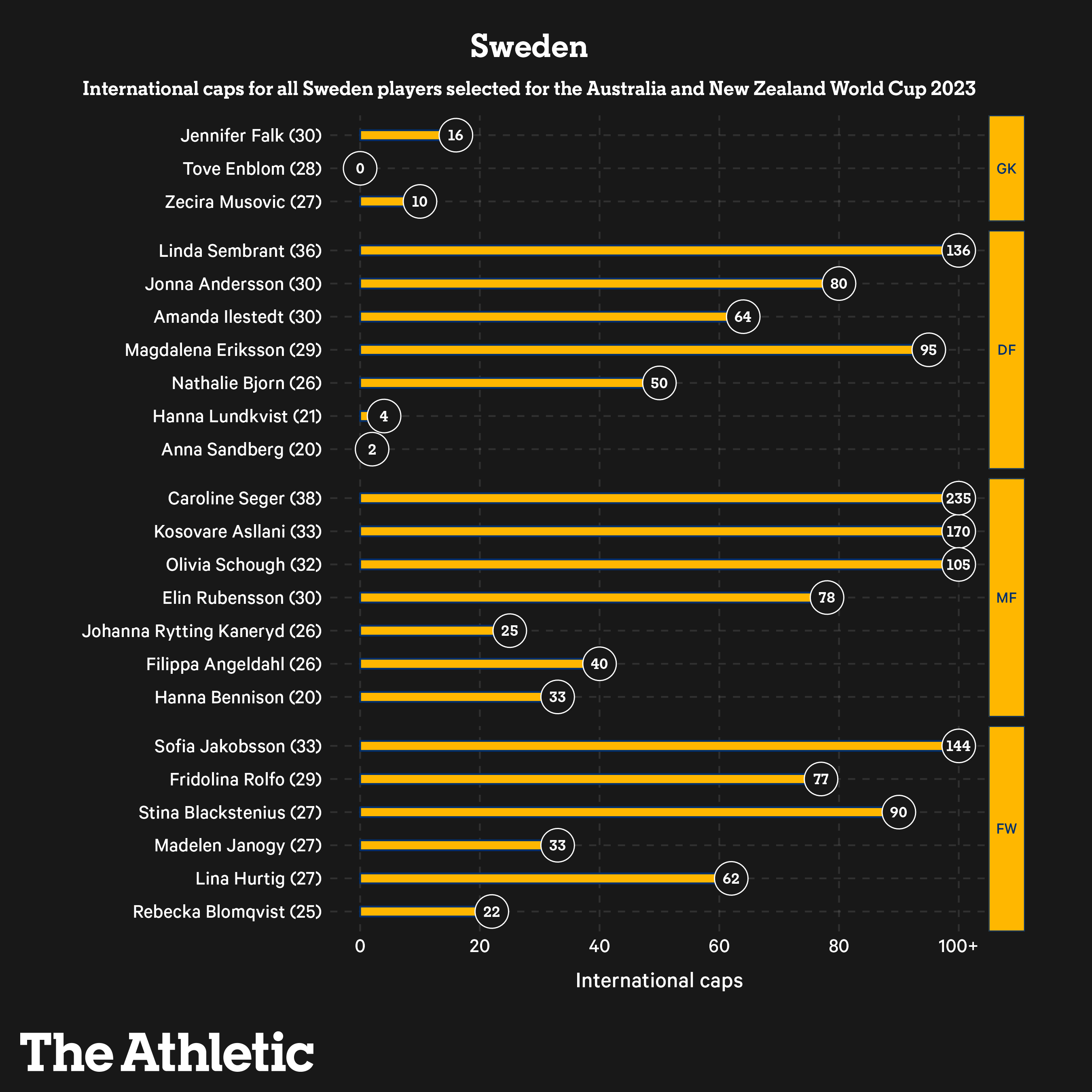 Seules les championnes précédentes, l’USWNT, l’Allemagne et la Norvège, ont marqué plus de buts et remporté plus de victoires dans le tournoi au fil des ans. La Suède a atteint la finale en 2003 et a terminé troisième à trois reprises, y compris la dernière fois en 2019, lorsqu’elle s’est inclinée après prolongation en demi-finale contre les Pays-Bas.