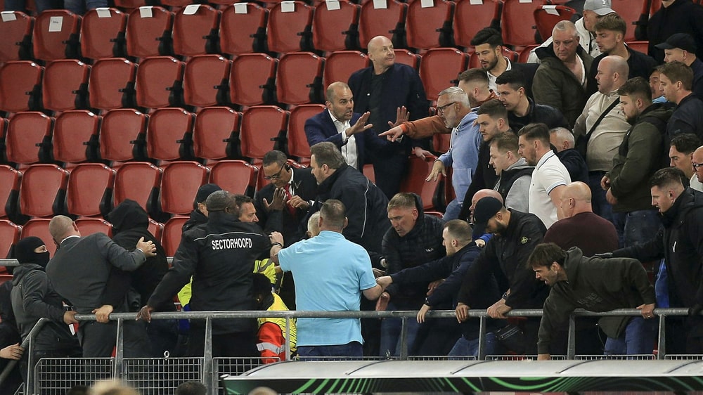 West Ham a remporté jeudi soir la demi-finale retour 1-0, accédant ainsi à la finale d’un tournoi européen pour la première fois depuis 47 ans. Le chaos a ensuite éclaté lorsque des supporters de l’AZ vêtus de noir ont tenté de prendre d’assaut une zone du stade réservée aux amis et à la famille des joueurs et des dirigeants de West Ham.