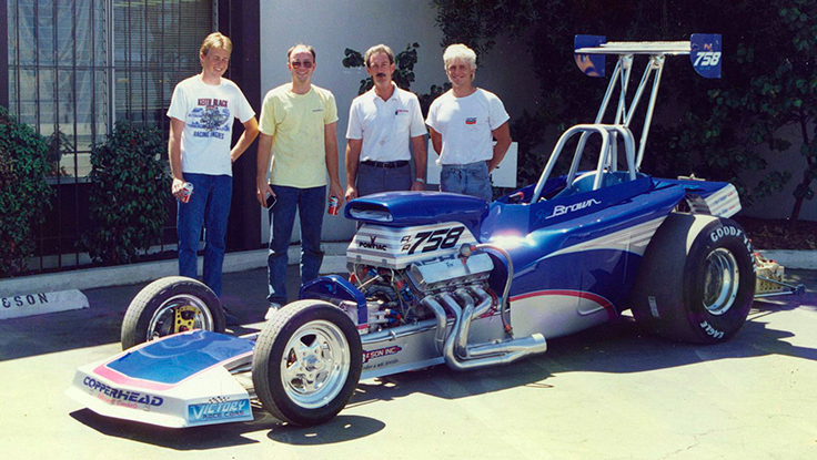 Parallèlement, ses œuvres d’art attirent déjà l’attention, sur la piste et en dehors. Le pilote suédois de Pro Stock Michael Malmgren lui a ouvert de nombreuses portes aux États-Unis, l’une d’entre elles étant l’application de la peinture sur la très rapide A/Altered construite par Victory du pilote de Comp, Skip Brown, en 1990.