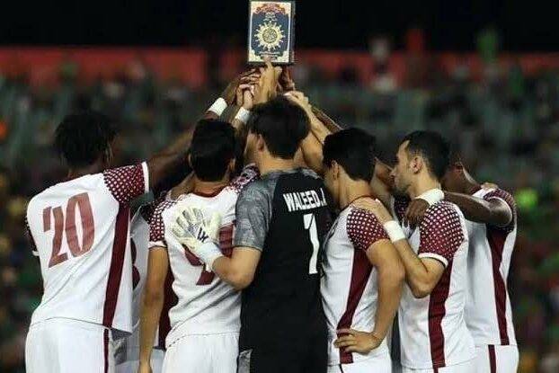 Un grand respect pour les footballeurs et les arbitres irakiens qui brandissent le Coran avant un match en réponse à l’incendie du Coran en Suède.#quran #quranburning #quranburninginsweden pic.twitter.com/eCg8KyQhMb