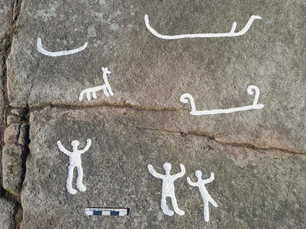 Ou perdues jusqu’au mois dernier, lorsqu’une équipe de chercheurs qui étudiait la province de Bohuslän, dans l’ouest de la Suède, a découvert ces anciennes œuvres d’art. Les gravures, ou pétroglyphes, ont été réalisées il y a environ 2 700 ans, selon la Fondation pour la documentation des gravures rupestres du Bohuslän. Elles mesurent environ trois mètres de haut et décorent une paroi rocheuse abrupte qui formait autrefois le bord d’une île avant que le niveau de la mer ne baisse d’une quarantaine de pieds en plusieurs siècles.