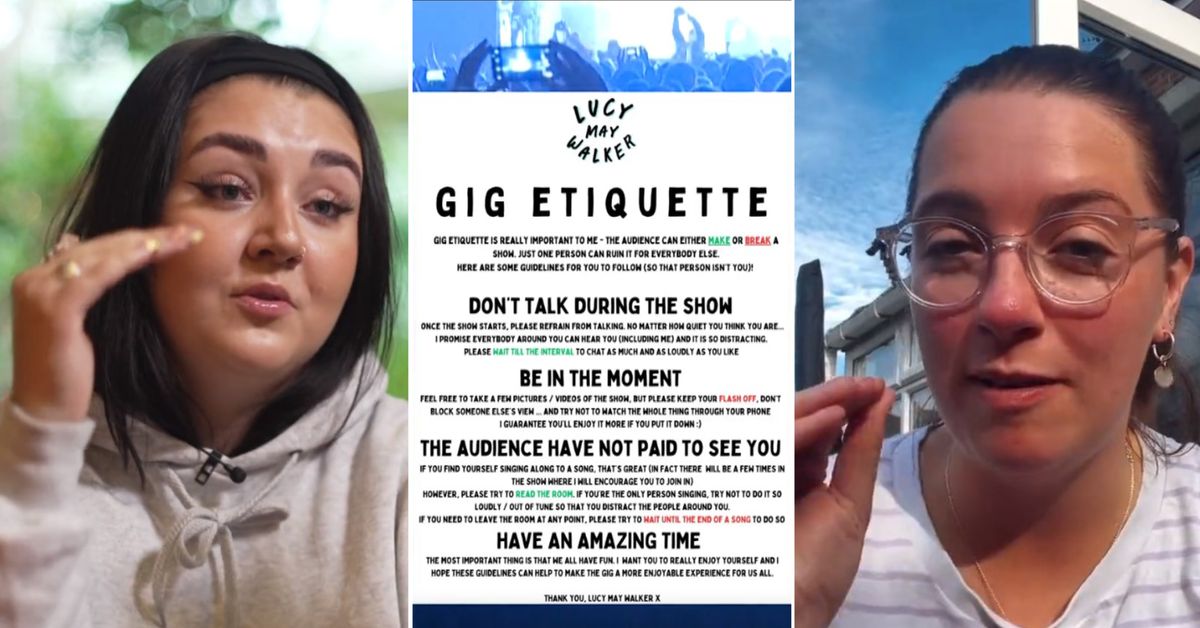 Le débat international a été relancé au Royaume-Uni après que l’artiste Lucy May Walker a partagé sur X, anciennement Twitter, un prospectus qu’elle a également distribué lors de sa tournée. Elle y énumère une série de règles qu’elle demande au public de respecter, telles que « ne pas parler pendant le concert » et « lire la salle » :