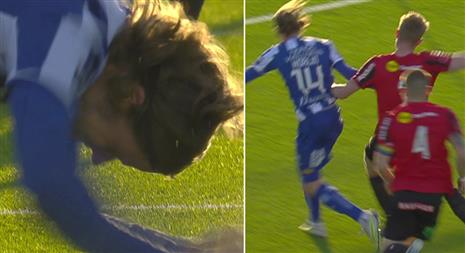 A la 32e minute, Gustaf Norlin tombait dans un duel avec Torbjørn Lysaker Heggem dans la surface de réparation, puis réclamait un penalty, sans succès. Norlin, quant à lui, semblait vraiment énervé, et frappait le sol de ses poings.