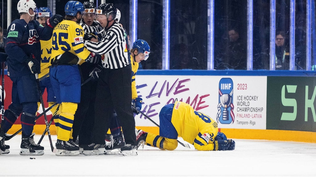 Un tacle au genou du joueur américain Michael Eyssimont dès la cinquième minute de la première période a entraîné la fin du match pour lui contre les Etats-Unis. Rasmus Sandin a dû être aidé à quitter la glace, tandis que Michael Eyssimont a reçu une pénalité de match.