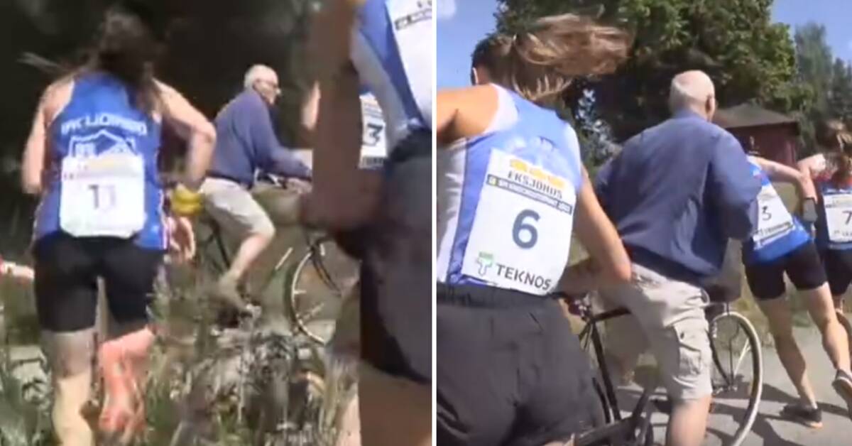 Lors de la deuxième demi-finale féminine du sprint à élimination directe de la semaine SM à Umeå, les coureurs d’orientation ont dû éviter un obstacle inhabituel. Dans un parc, un homme est venu à vélo et s’est retrouvé au milieu du groupe en quête de la dernière place.