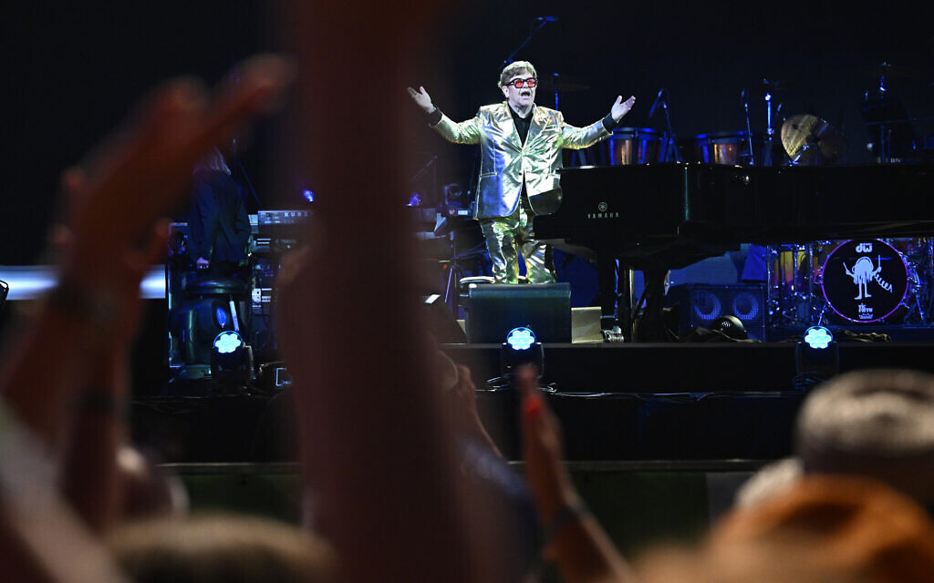 Il a ensuite poursuivi avec « Philadelphia Freedom » et « I Guess That’s Why They Call It the Blues » devant un public enthousiaste, dont beaucoup portaient des lunettes bleues ou rouges étincelantes.