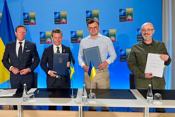 Les accords ont été signés lors du sommet de l’OTAN à Vilnius le 12 juillet par le ministre ukrainien des affaires étrangères, Dmytro Kuleba, le ministre de la défense, Oleksii Reznikov, le ministre suédois de la défense, Pål Jonson, et Göran Mårtensson, le directeur de l’agence d’approvisionnement du ministère suédois de la défense.