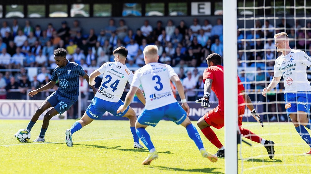 Un véritable tableau a donné l’avantage au Malmö FF à la 75e minute. Le gardien du MFF, Johan Dahlin, a envoyé un long ballon sur lequel Ali s’est précipité. Le gardien de Värnamo sortait trop, le ballon rebondissait au-dessus de lui et Ali n’avait plus qu’à contourner Rasheed pour placer le ballon dans le but vide.