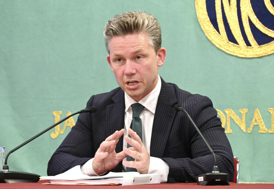 Le ministre suédois de la Défense, Pal Jonson, s’exprime lors d’une conférence de presse à Tokyo le 6 juin 2023. (Kyodo)