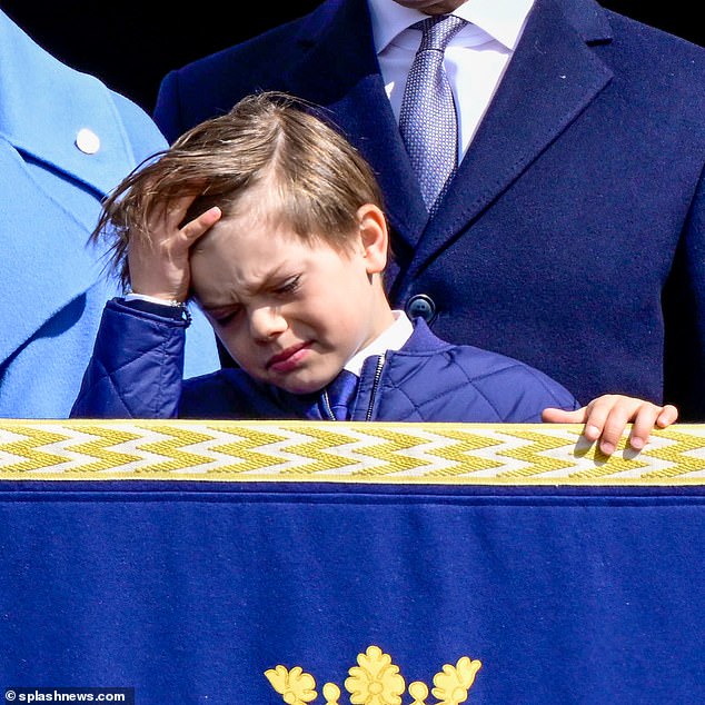 Le Prince, âgé de sept ans, a pris exemple sur le Prince Louis du Royaume-Uni en paraissant agité lors d’une apparition publique sur le balcon de la cour du Palais Royal de Stockholm, alors que le Roi Carl XVI Gustaf fêtait ses 77 ans.