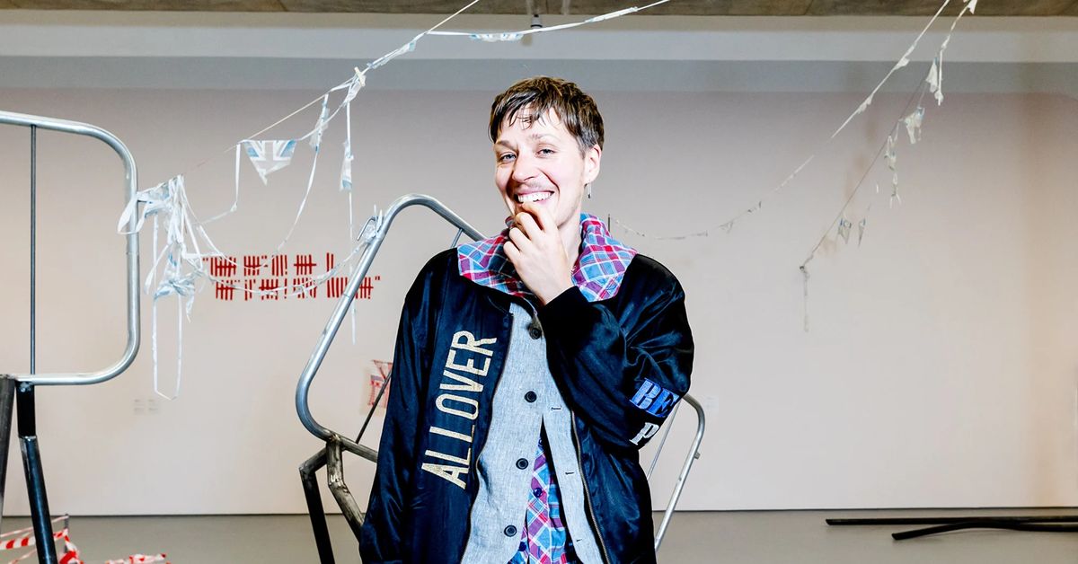 Jesse Darling est connu pour ses sculptures et ses installations qui utilisent des objets communs tels que des fils barbelés, des clôtures anti-émeutes, des échelles et d’autres matériaux similaires utilisés pour délimiter des zones.