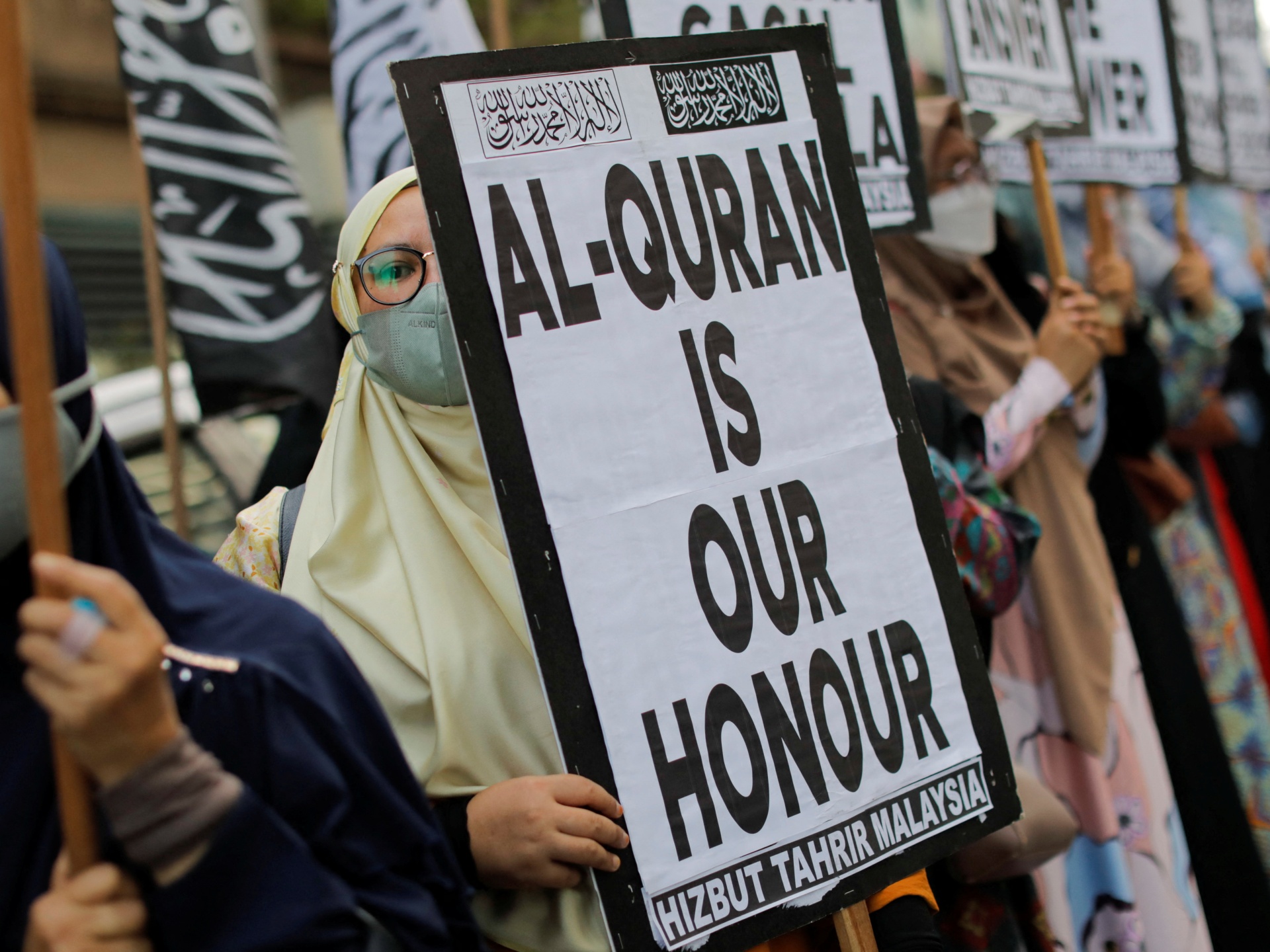 Il a également appelé à des manifestations après les prières du vendredi, déclarant que « le monde entier doit voir comment nous embrassons notre Coran, et le monde entier doit voir comment nous protégeons notre Coran avec notre sang ».