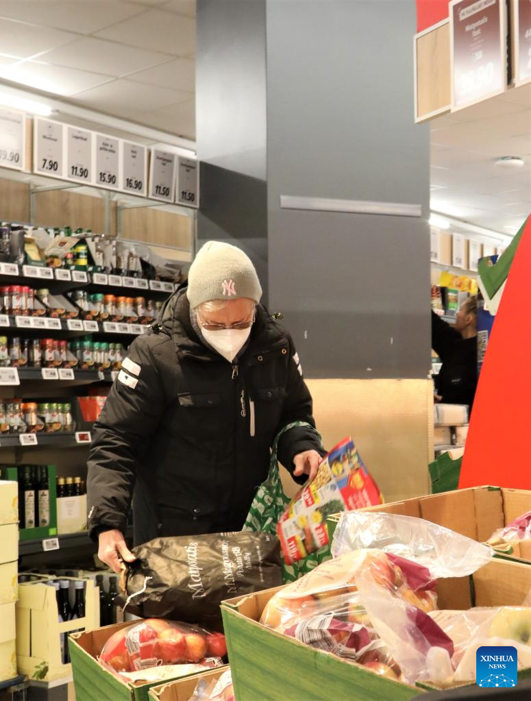 Un client fait ses courses dans un supermarché du centre de Stockholm, en Suède, le 15 mars 2023. Les prix des denrées alimentaires en Suède ont augmenté de plus de 20 pour cent au cours des 12 derniers mois, enregistrant la plus forte hausse depuis plus de sept décennies, a déclaré mercredi Statistics Sweden. (Photo by Fang Ming/Xinhua)