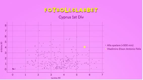 Qu’est-ce que c’est ? Eh bien, le joueur avec le plus grand nombre de tacles réussis par match sur la droite et le joueur avec le plus grand nombre de dribbles réussis vers le haut. C’est indéniablement une combinaison inhabituelle. Un futur latéral ?