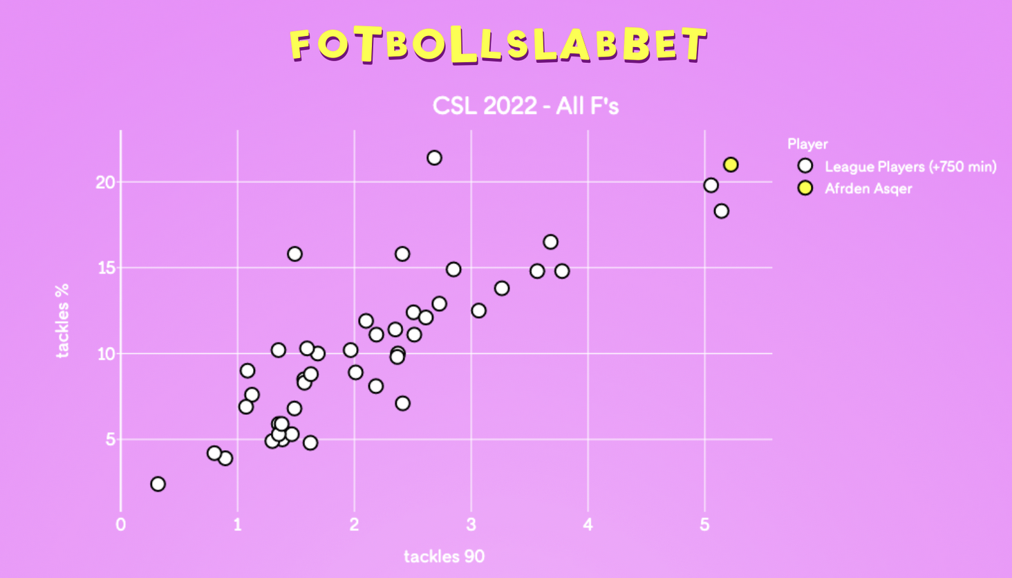 Le conseil le plus clair se trouve dans le jeu de recapture. Asqer se distingue à la fois par le nombre de tacles et le pourcentage de tacles réussis, où il était en tête de la ligue en 2022.