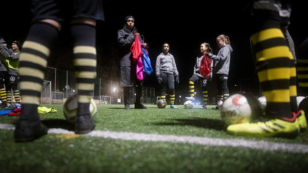 Finitions sur le terrain Leila Fitwi Badic termine son entraînement. Elle est elle-même une ancienne joueuse de football et a dû repenser en grande partie ses séances d’entraînement à l’AIK.