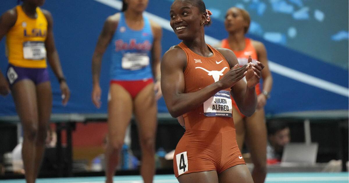 Julien Alfred, qui a fêté ses 22 ans pendant le championnat, est arrivée au Texas (États-Unis) en 2018 en provenance de Sainte-Lucie, une île des Caraïbes. Cinq ans plus tard, elle quitte l’ère universitaire avec le titre de sprinteuse la plus méritante de tous les temps.